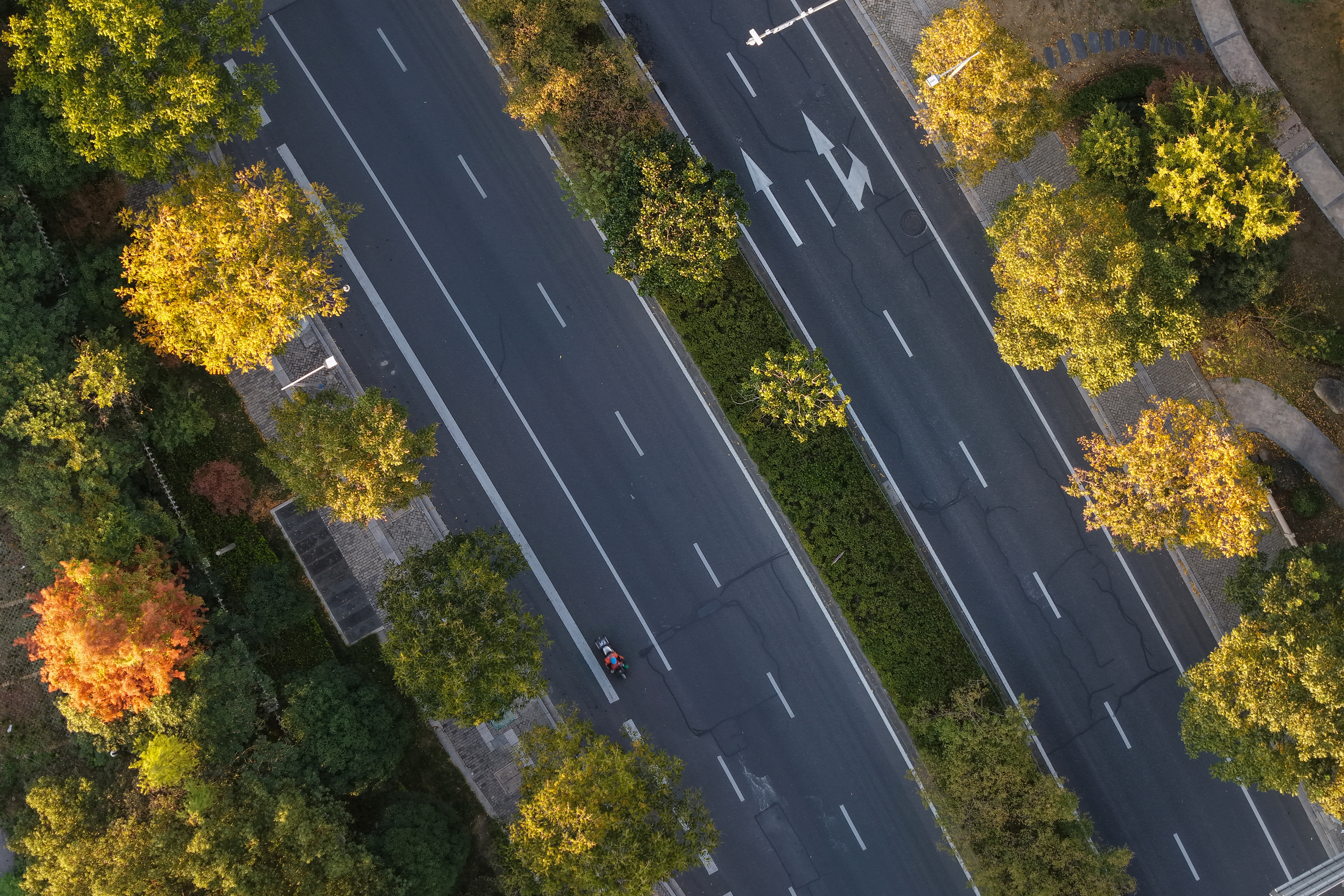 今天(11月13日)傍晚,夕陽斜照,嘉興市區(qū)云東路被一層金色柔光籠罩,道路兩旁的銀杏、楓樹層林盡染,落葉鋪地,宛如夢境。