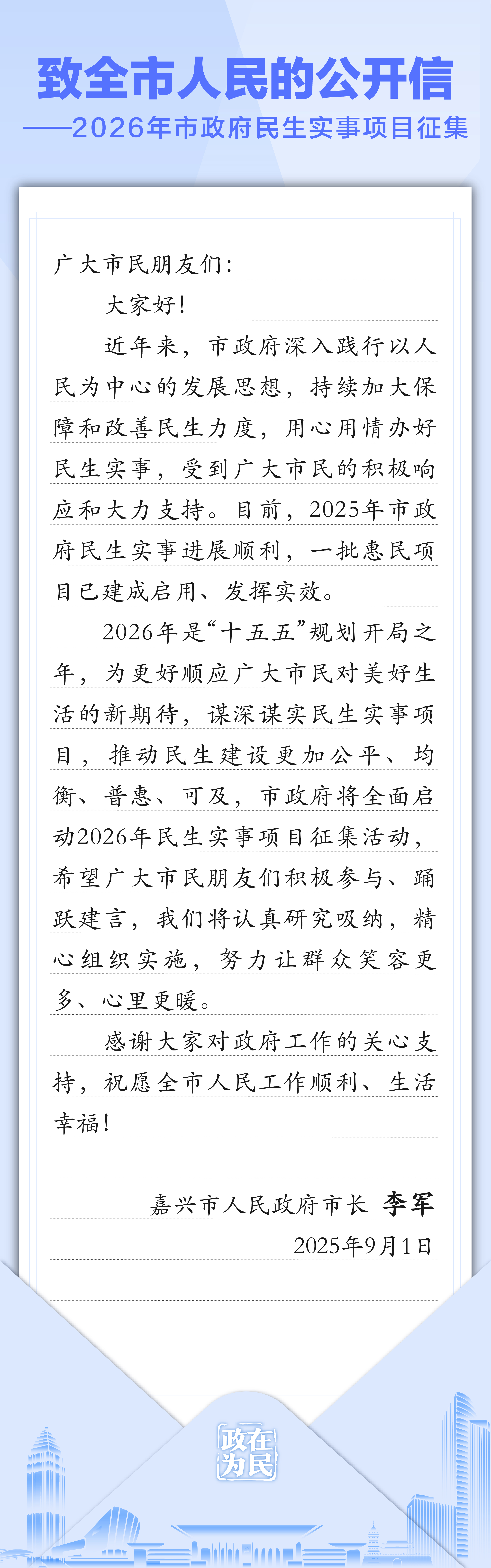 征集丨李軍市長致全市人民的公開信