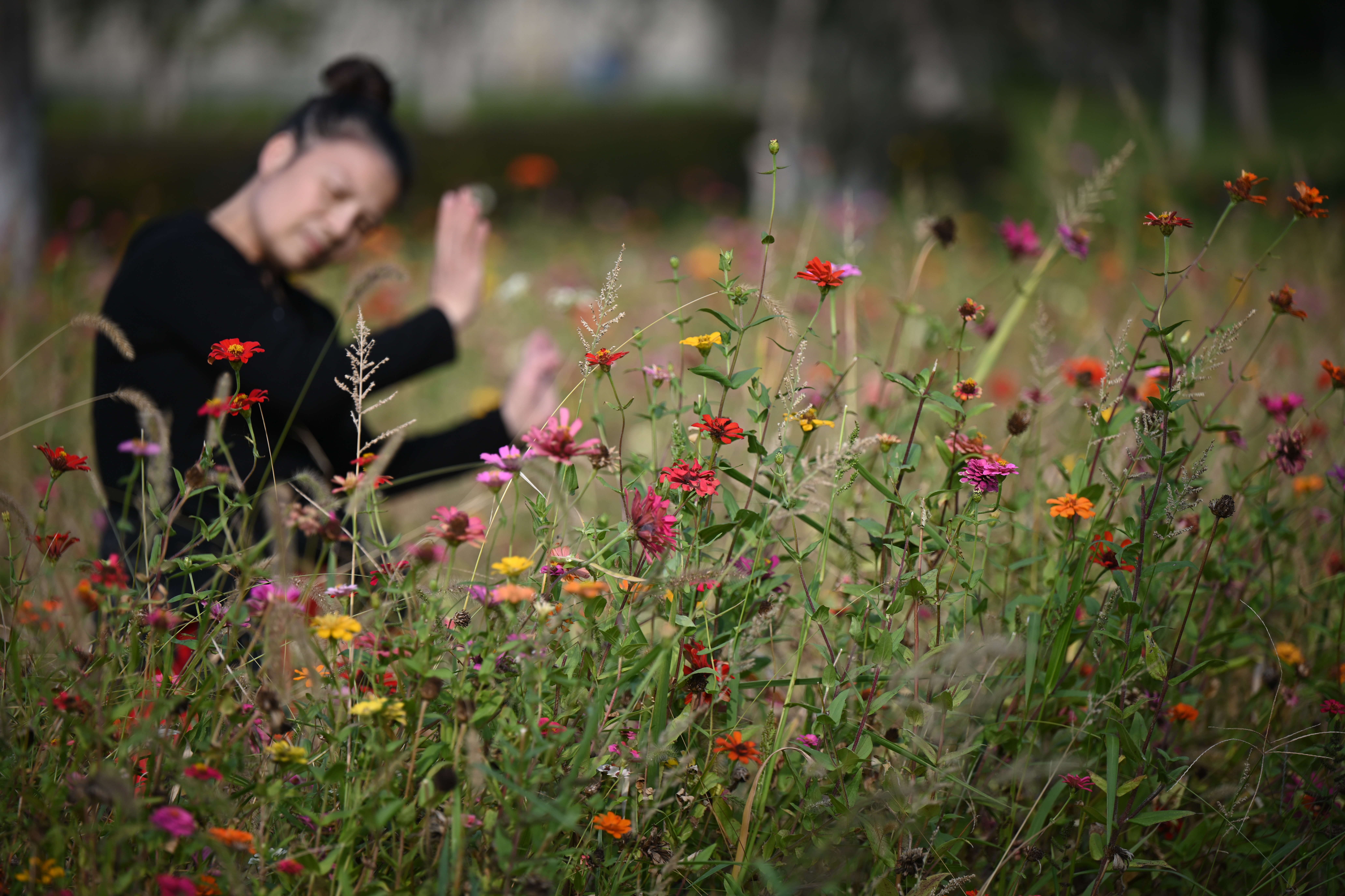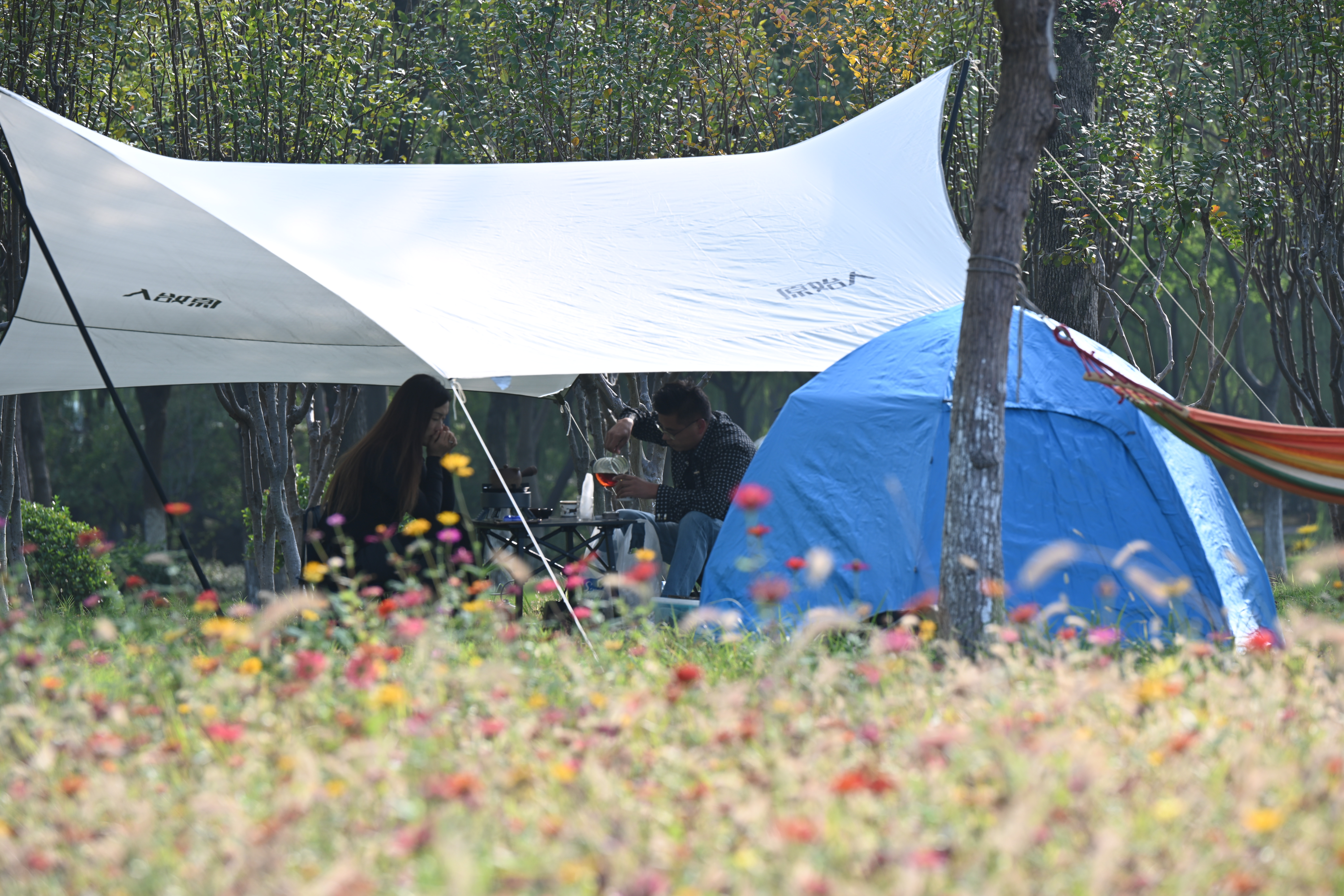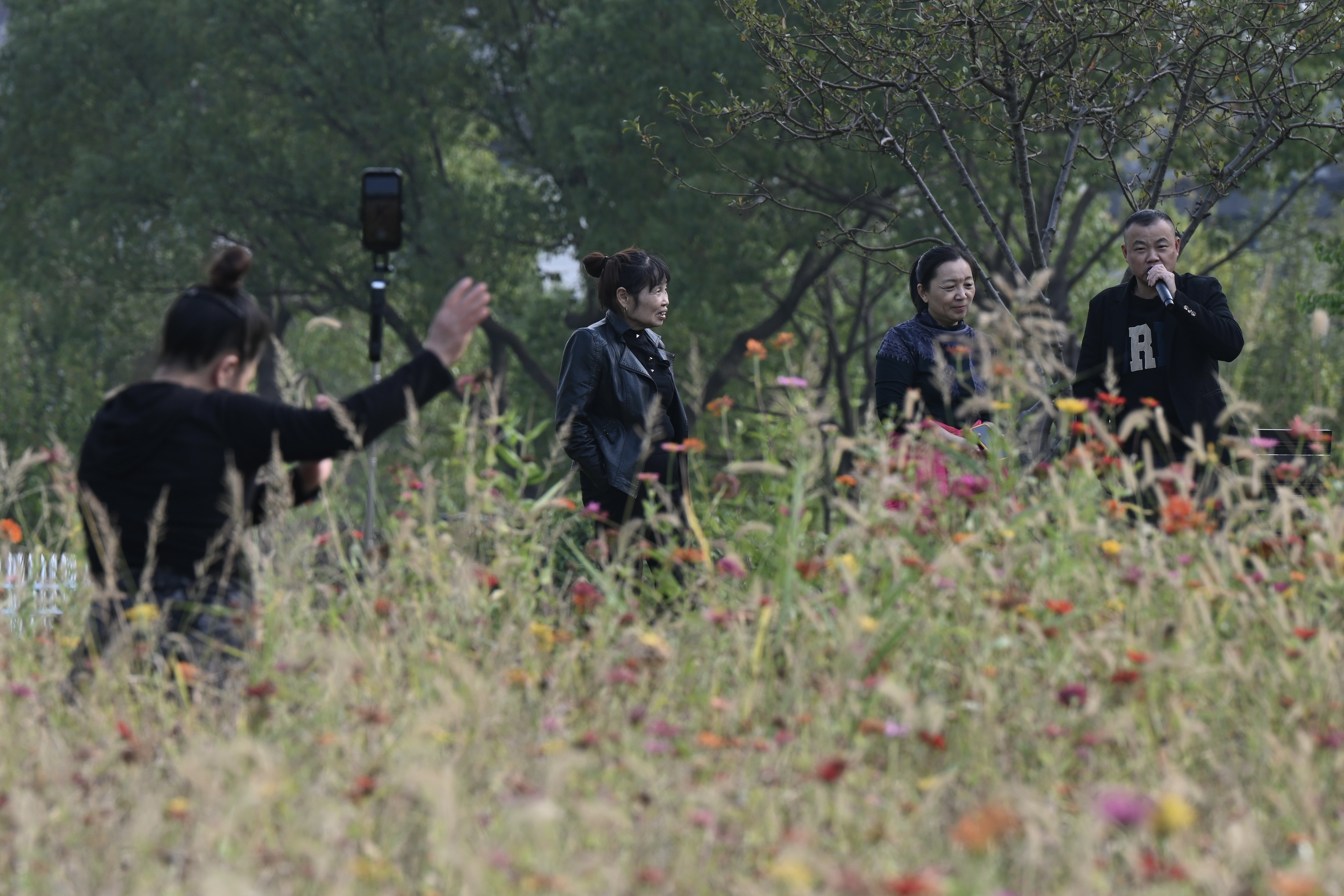 今天(10月27日)午后,嘉興市區新塍塘路邊,大片鮮花盛開,吸引了人們來此露營、唱歌、跳舞,度過休閑午后。